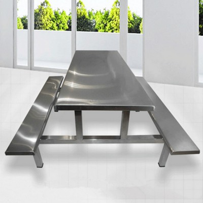 不锈钢八人位食堂餐桌连体设计更牢固。