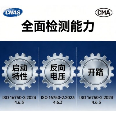 复位特性与启动特性测试聚焦设备的动态响应性能。复位特性测试验证电子设备在供电异常恢复后,能否快速、准确地恢复正常工作状态,无数据丢失或功能紊乱;启动特性测试则模拟车辆启动时的电压变化环境,检测设备在启动阶段的启动成功率和运行稳定性,保障车辆每次启动都能顺利激活各类电子系统。
