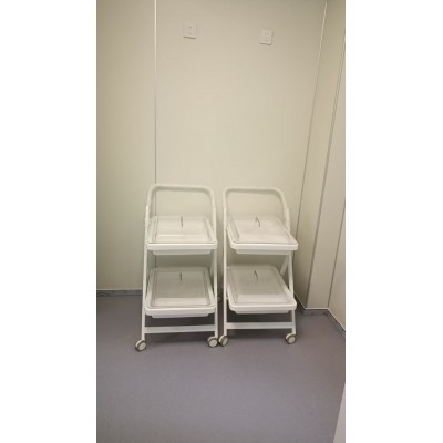 小推车二层、三层独立式设计,周转盘材料由高分子复合材料独立开模制成,车体由钢体喷塑而成,具有耐腐蚀、不沾水、车行顺畅、取放方便等优点。盘内内镜存放导航隔条使污染部分分离。多层设计使客户在使用过程中可将清洁和污染的内镜分层标明后置放,可达到高效周转,避免交叉感染等功效。