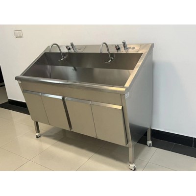 不锈钢洗手池出水方式分为:感应式、膝碰式、脚踏式
