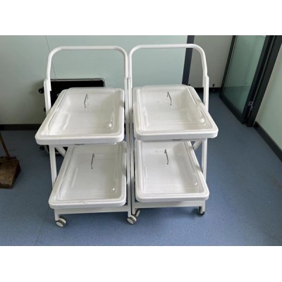 小推车二层、三层独立式设计,周转盘材料由高分子复合材料独立开模制成,车体由钢体喷塑而成,具有耐腐蚀、不沾水、车行顺畅、取放方便等优点。盘内内镜存放导航隔条使污染部分分离。多层设计使客户在使用过程中可将清洁和污染的内镜分层标明后置放,可达到高效周转,避免交叉感染等功效。