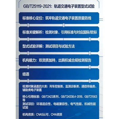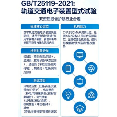 | 测试内容GBT25119型式试验 | 检测对象轨道交通设备 | 检测报告CNAS、CMA检测报告 |