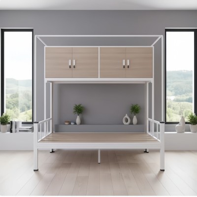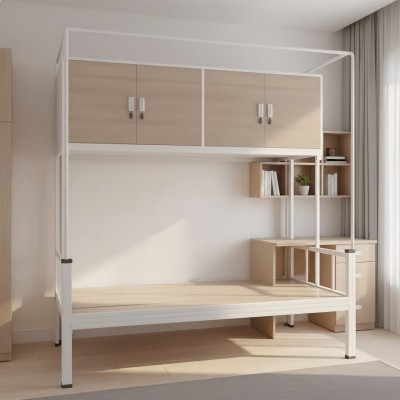 它巧妙地将睡眠区与收纳区融为一体,床架上方的大容量储物柜,能轻松收纳换季被褥、闲置杂物,让台面告别杂乱,让空间回归整洁。浅木色柜门与白色金属框架的搭配,简约又不失质感,无论是日式、北欧还是现代风的家居,都能完美融入。