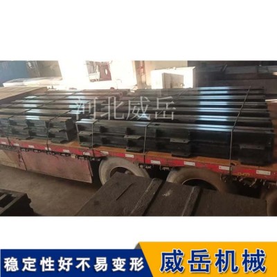 选用HYPERlink "http://www.chinaweiyue.com/" 地轨需要注意的要求是:T型槽地轨,地梁,地槽铁,基础槽铁,需注意地轨所承载的载重,因地轨为条形结构,固承载要比动力试验台等大型基础平台要小。如承载过大,可采用加大尺寸,提高材质、加强铺设密度的方法解决。而铸铁地轨http://www.chinaweiyue.com/的精度:根据客户的需要来制定。