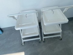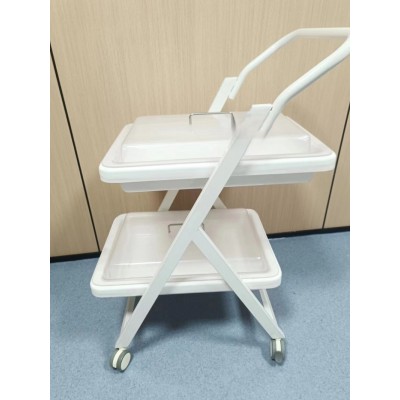 小推车二层、三层独立式设计,周转盘材料由高分子复合材料独立开模制成,车体由钢体喷塑而成,具有耐腐蚀、不沾水、车行顺畅、取放方便等优点。盘内内镜存放导航隔条使污染部分分离。多层设计使客户在使用过程中可将清洁和污染的内镜分层标明后置放,可达到高效周转,避免交叉感染等功效。